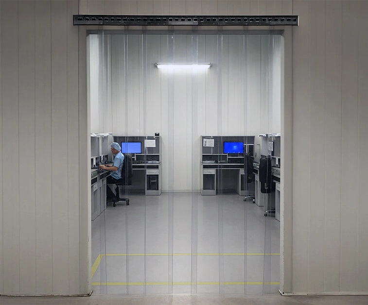 Ces rideaux réduisent l’accumulation d’électricité statique et sont recommandés pour les zones techniques, industrielles ou électroniques.